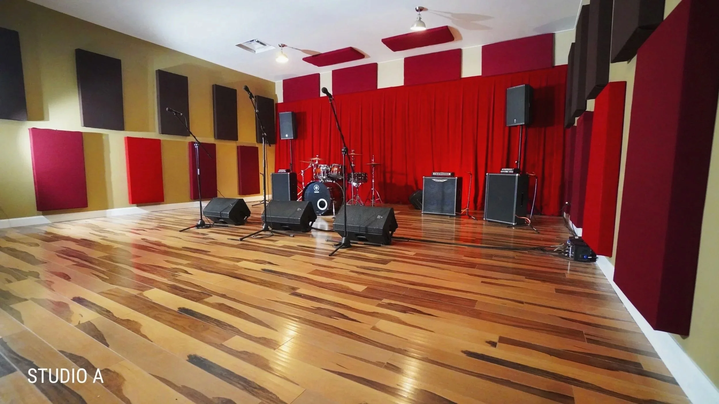 Le studio A est le deuxième plus grand studio après le Studio G. Il est légèrement plus spacieux que les studios B et C, proposés au même tarif. Il se distingue par notre iconique rideau rouge et dispose de l’équipement standard des studios Base Bin.